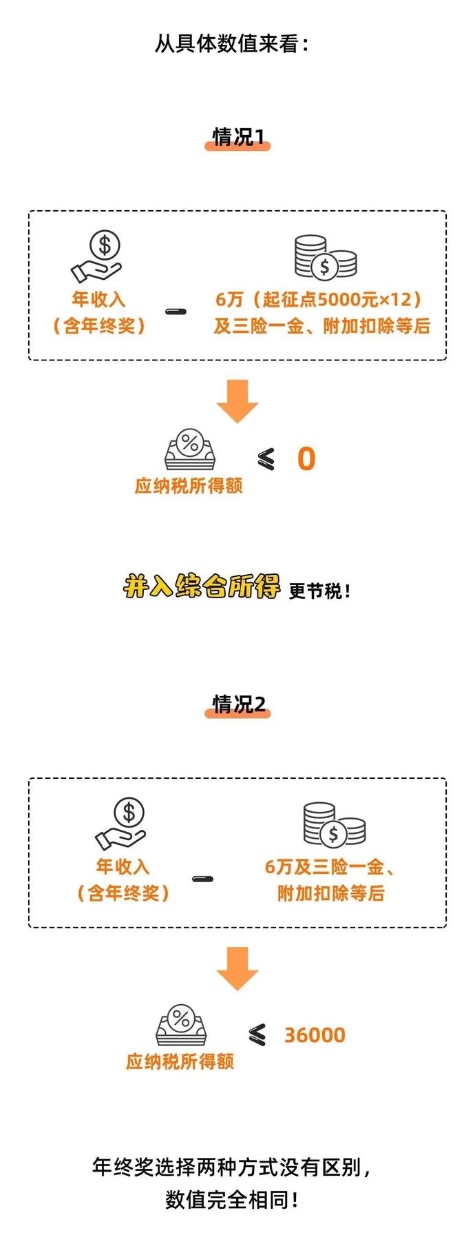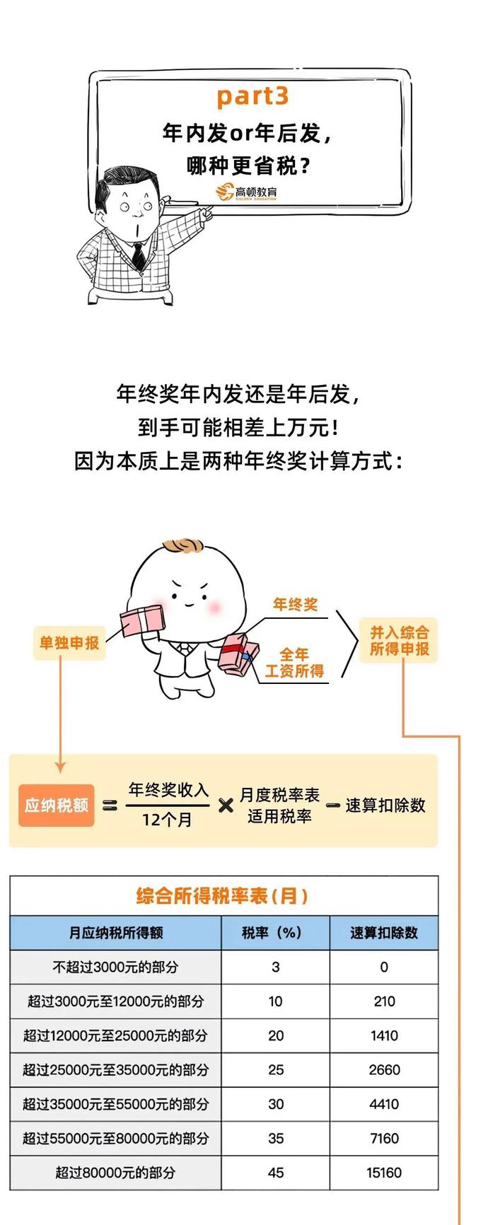 那么为什么年终奖要全部并入综合所得?你的年终奖年后发、年内发,到手差多少?答案尽在下图中。