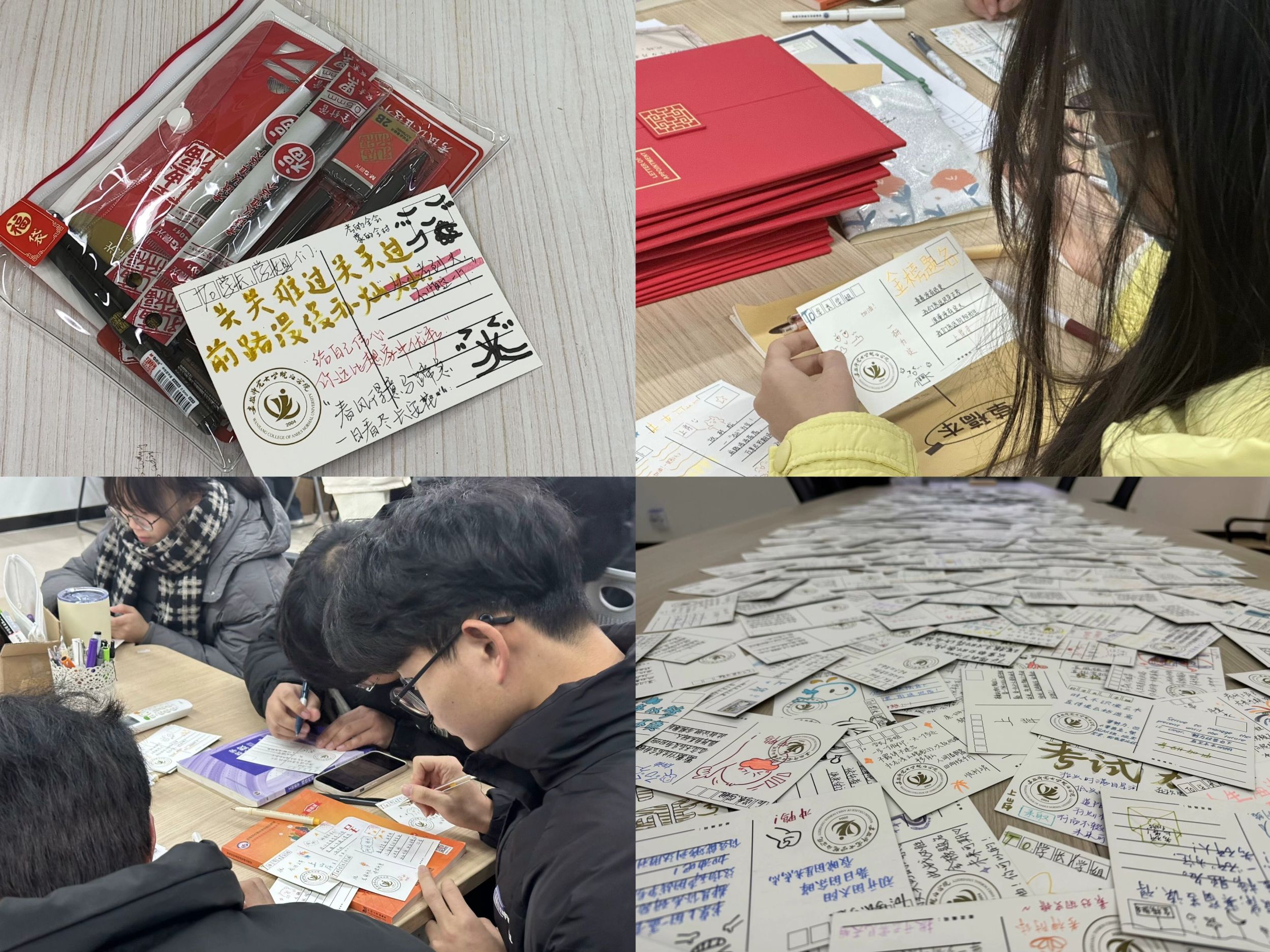 12月17日,院学生会成员前往文津校区为备考学子送去精心准备的考研礼包,预祝他们一战成“硕”。除祈福文具袋,一张张饱含学弟学妹们心意的明信片也被送至考研学子手中。考研学子在寒冬中感受温暖,倍受鼓舞,表示一定会全力以赴,以饱满的精神状态迎接考试,不辜负学院和老师的殷切期望。