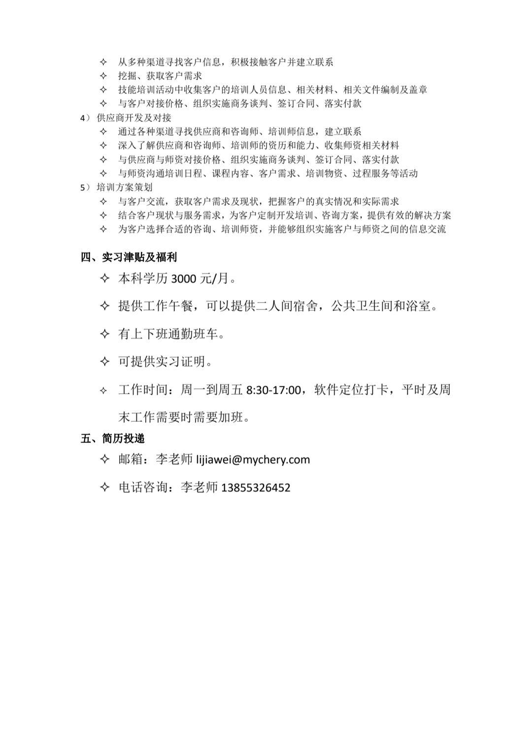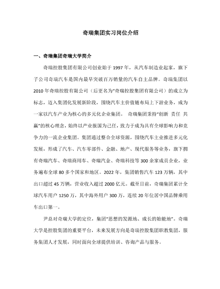 > 奇瑞集团实习岗位介绍