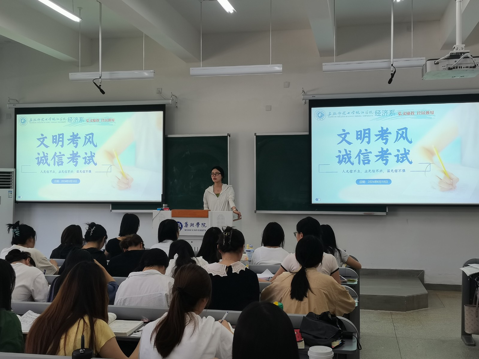 为了营造公平、公正的考试环境,严肃考风考纪,增强同学们的诚信考试意识,近日,经济系各班举办以“文明考风,诚信考试”为主题的期末诚信考试教育班会。本次班会旨在引导同学们树立正确的考试观念,维护考试的公正性,展现经济系学子的良好精神风貌。