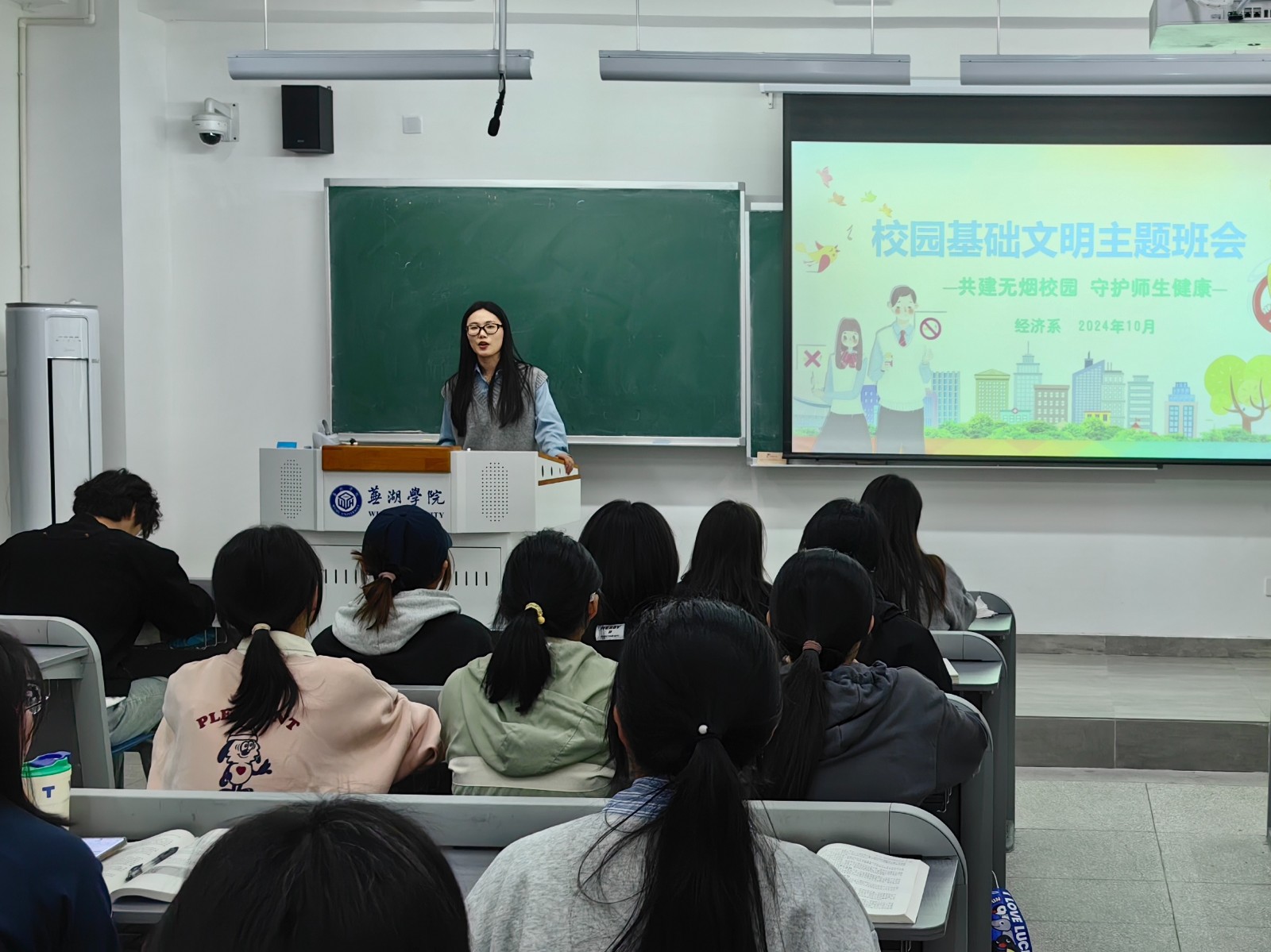 为规范学生校园日常行为,培养大学生良好行为习惯,促进文明习惯养成,共建安全、文明、美丽校园。经济系以班级为单位召开“共建无烟校园,守护师生健康”的校园基础文明主题班会。