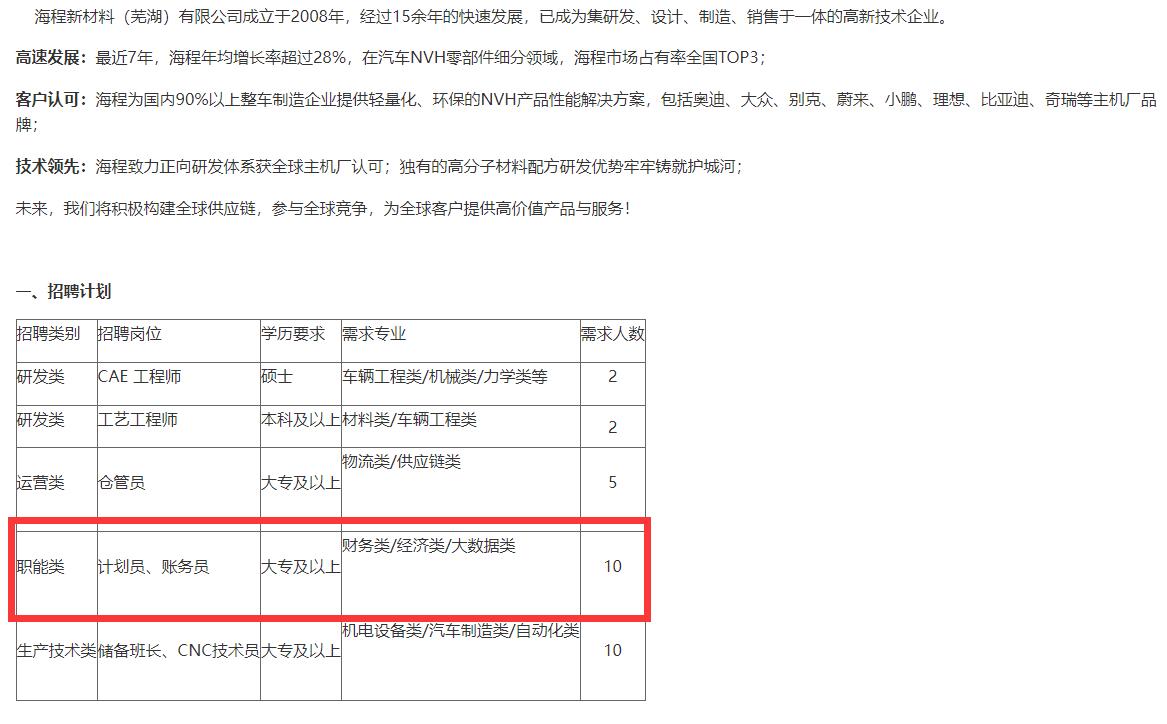 > 海程新材料(芜湖)有限公司 2024届校园招聘
