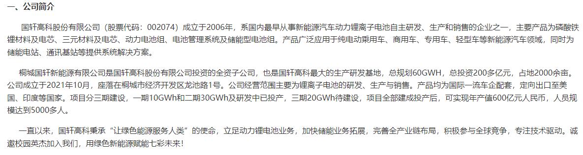 > 桐城国轩新能源有限公司招聘简章