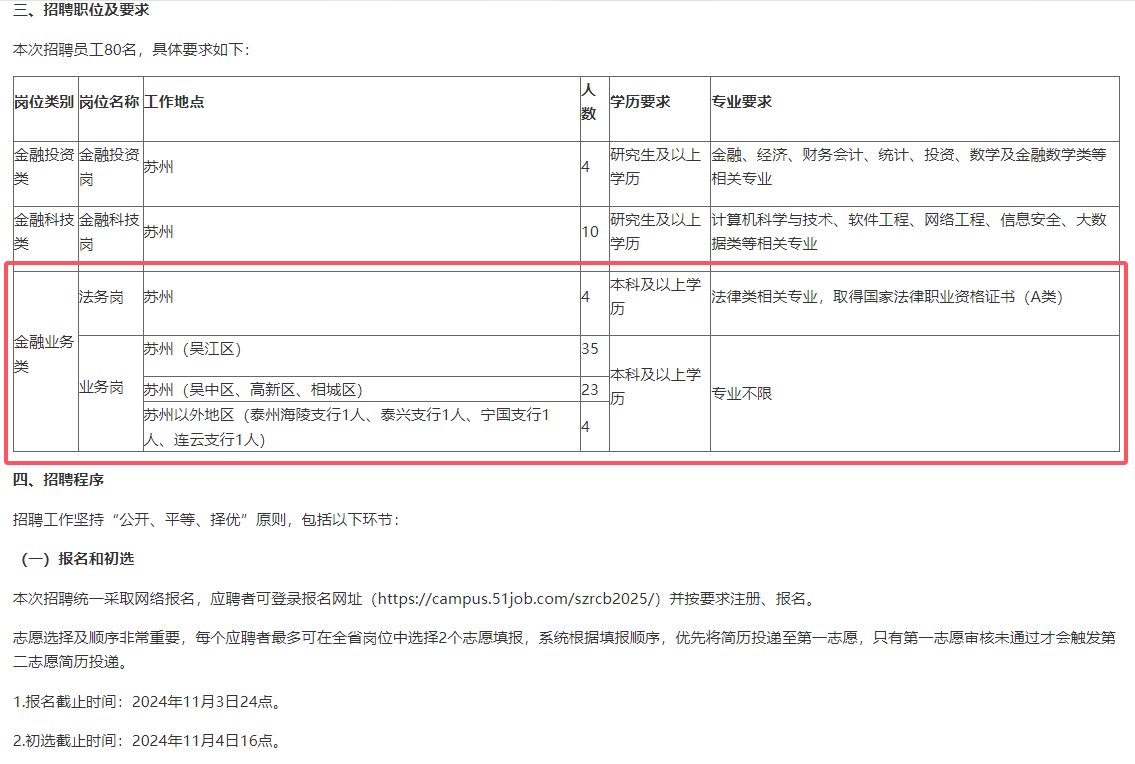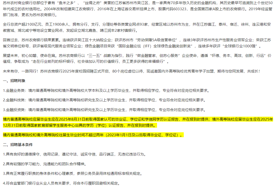 > 苏州农村商业银行2025年度校园招聘简章