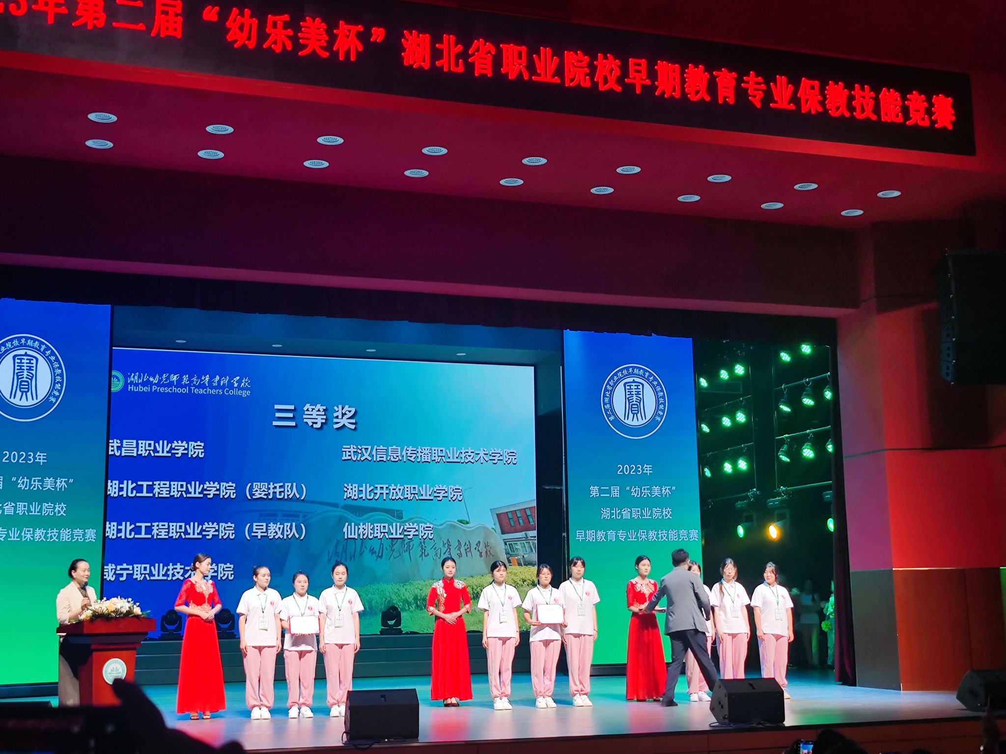 在近期闭幕的2023年第二届“幼乐美杯”——湖北省职业院校早期教育专业保教技能竞赛中,开云官网早教专业学生代表队参赛,获得省三等奖的优异成绩。