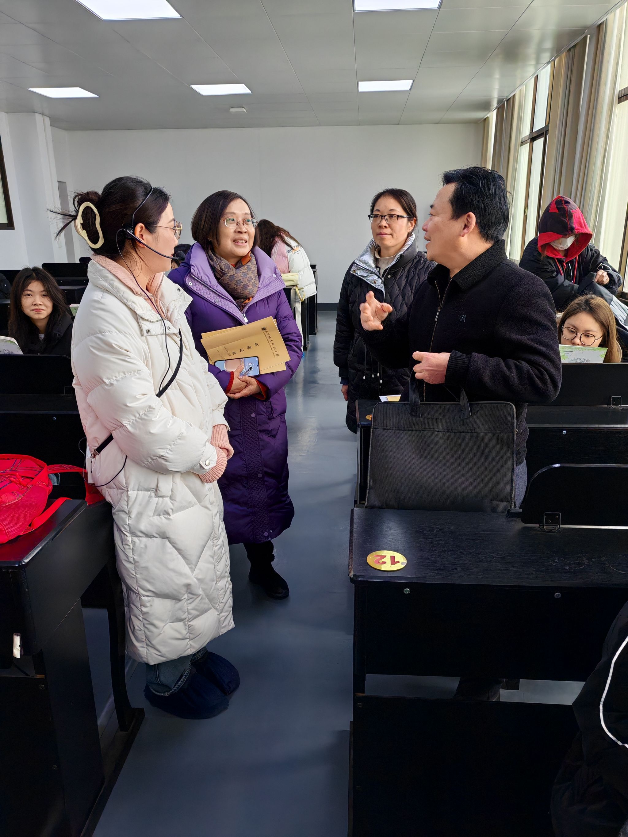 瑞雪迎春,书香满园。新学期,人文学子回到熟悉的课堂,开启新学期第一课。2月28日上午,校党委委员、纪委书记、监察专员余为民,kaiyun开云官方党总支书记韩飞、院长余永欢、教学负责人肖琼同赴教育实训中心202教室,与授课老师王华珍以及21学前(3+2)三班2组学生同上“开学第一课”——《钢琴基础与儿歌弹唱2》。