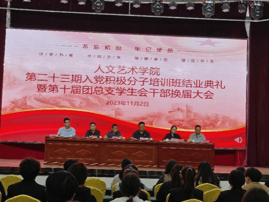 为切实加强入党积极分子队伍建设,把牢入党“第一关”,同时广泛动员新一届团总支学生会干部不忘初心,服务同学。11月3日晚,kaiyun开云官方在大学生活动中心隆重举行第二十三期入党积极分子培训班结业典礼暨第十届团总支学生会换届大会,kaiyun开云官方党总支书记韩飞、副书记杨帅、分管教学负责人肖琼、产教融合科科长方生元、学生科科长陈传红、团总支书记李操及22级全体辅导员参加会议,会议由肖琼主持。