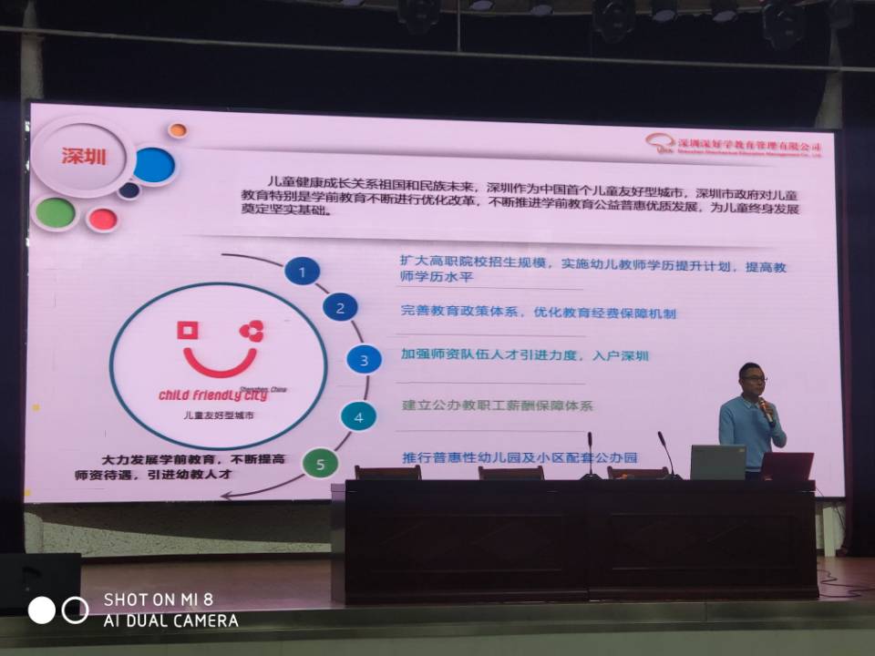 随后,深好学肖经理作宣传,讲解当前学年教育专业就业环境以及深圳学前教师政策待遇,对深好学教育管理有限公司的状况、定位、福利薪资、后期服务等方面一一作了介绍。