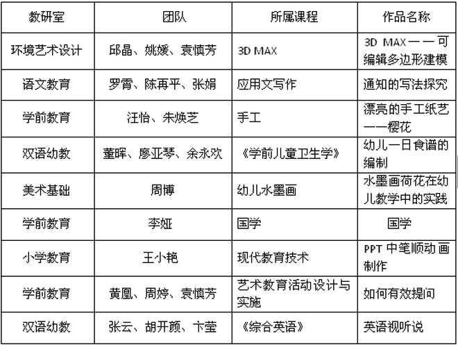 此次竞赛由8个教研室通过初赛,最终推荐产生了9个教学团队的9项信息化作品参赛,涉及教育类专业课、艺术类专业课、公共课等多类课程,涵盖了教学比赛和教学设计比赛的两个赛项。比赛邀请到了校质量处处长石裕勤副教授、省信息化教学大赛四位获奖者余敏副教授、张娟副教授、孙卉副教授、肖琼副教授担任评委。比赛过程中,各位参赛教师态度认真严谨,语言表达规范流畅,合理选用智慧职教云课堂、蓝墨云班课、QQ、微信等信息技术及数字资源等,系统优化教学过程,有效达成教学目标。
