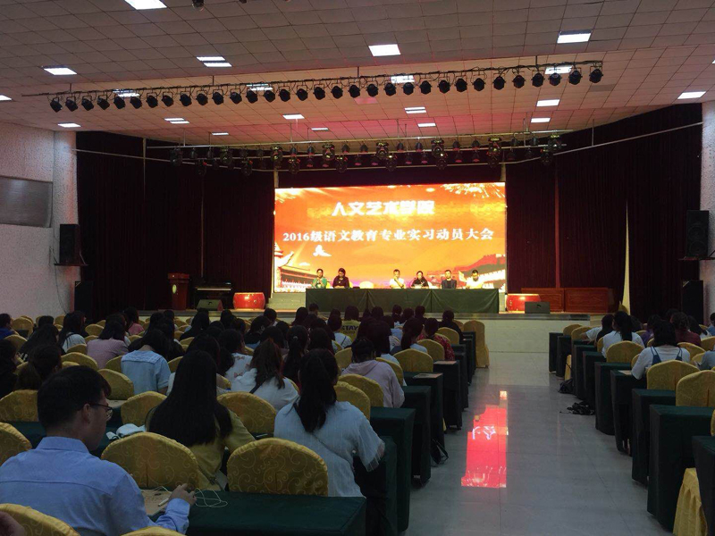 5月6日晚,16级语文教育专业教育实习动员大会在大学生活动中心隆重举行。kaiyun开云官方党总支书记卢臻、副院长余永欢、副院长杨帅和相关部门负责人、实习指导教师、16级语文教育专业辅导员严菡及全体实习生出席了大会。本次大会由卢臻主持。