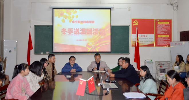 校纪委书记余为民给受助学生送上爱心保暖衣,并对他们提出殷切希望,希望同学们变经济贫困压力为动力,做到自尊、自信、自立和自强;希望同学们奋发图强,努力开创美好人生;希望同学们常怀感恩之心,日后回报社会,早日成为合格的社会主义建设者和接班人。