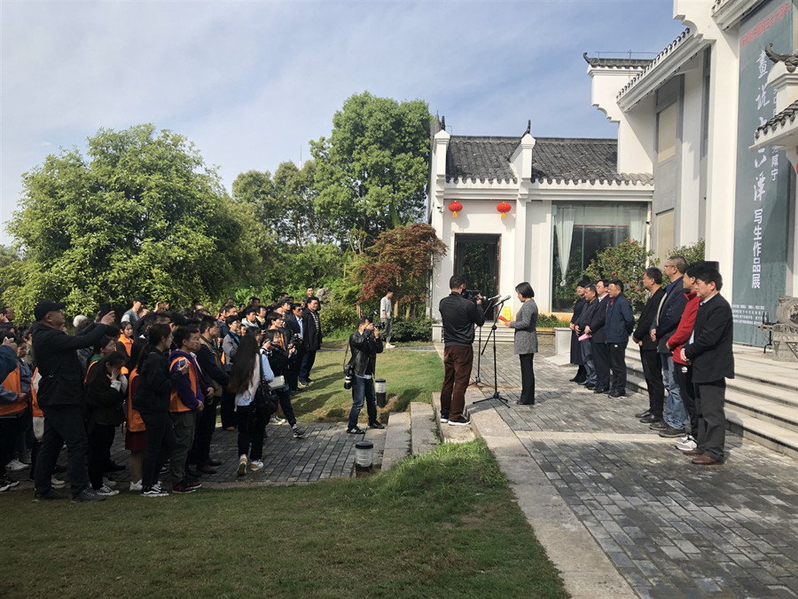 咸宁市文化和旅游局举办的“大美中国,灵秀咸宁,画说十六潭写生作品展”在咸宁市美术馆正式展出。本次展会邀请了30余位画家在十六谭进行写生,其中,kaiyun开云官方教师第二党支部书记余娟的作品也参加了本次展会。精湛的技艺妙笔生花,画家们用画笔表达出十六谭的美。余娟老师和黄佳妮老师为学生介绍了此次写生作品展览,同学们纷纷表示受益匪浅并且提升了自身的艺术修养。