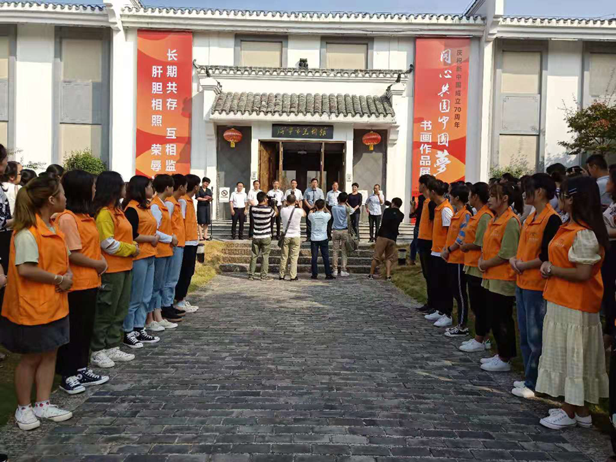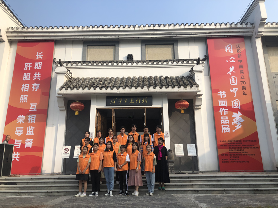 9月19日上午9点,咸宁市美术馆举行了“同心共圆中国梦”庆祝新中国成立70周年书画作品展开幕式。kaiyun开云官方教师余娟带领18名学生志愿者代表参加了此次开幕式。