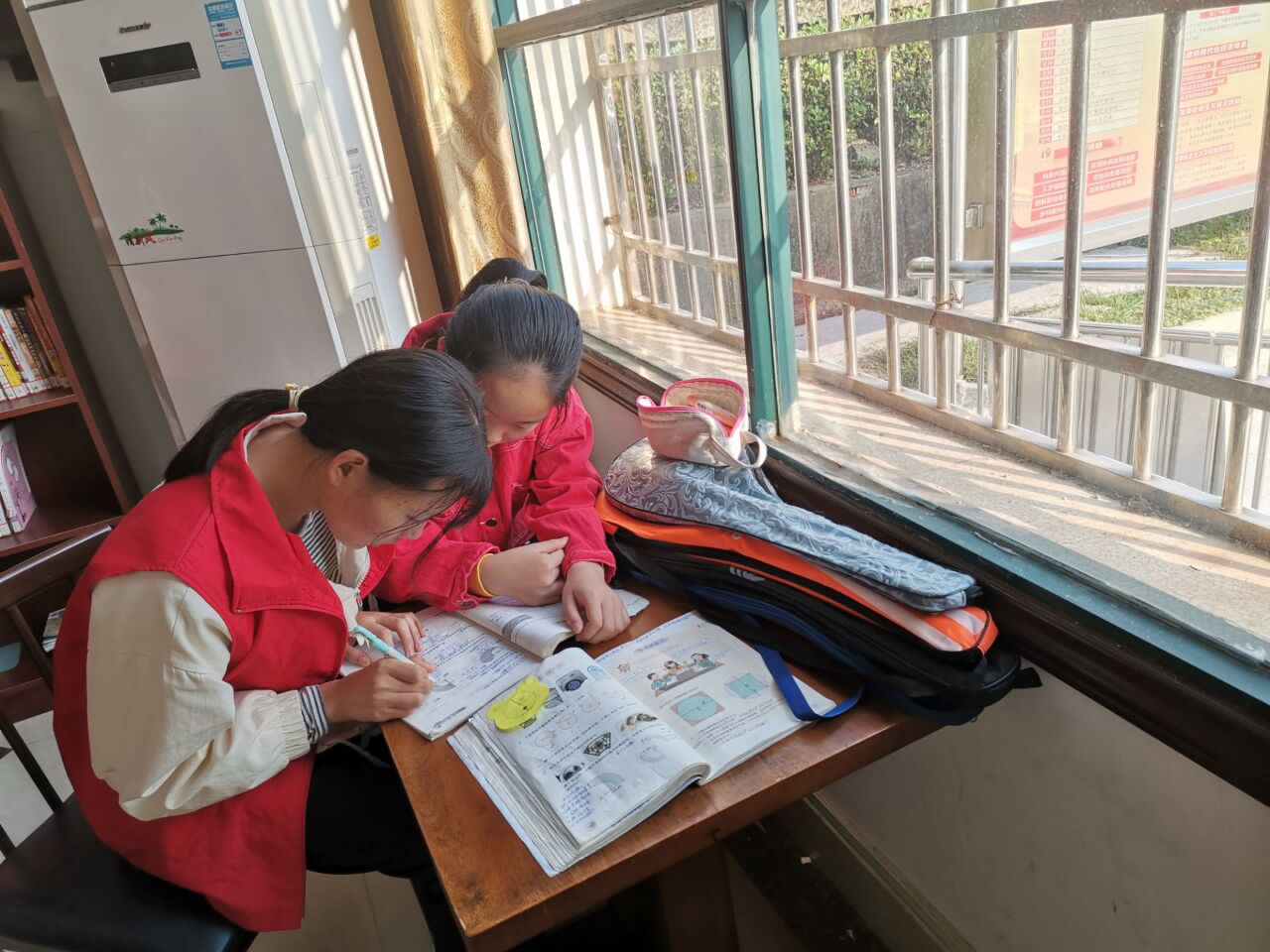 志愿者在辅导小朋友功课