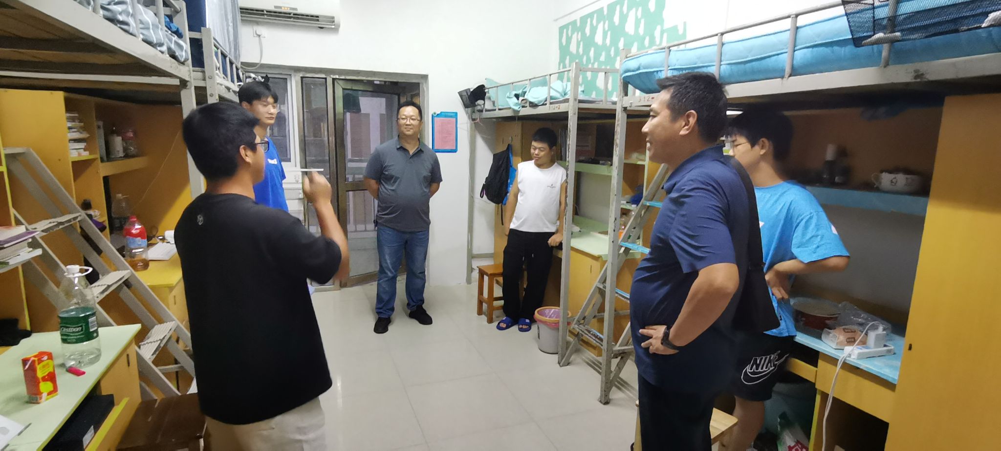 为进一步深入了解学生思想、生活及学习情况,加强5S寝室建设,9月27日晚,kaiyun开云官方党总支书记韩飞、副书记杨帅、团总支负责人李操及新生辅导员走访新生寝室进行开学初寝室安全检查。