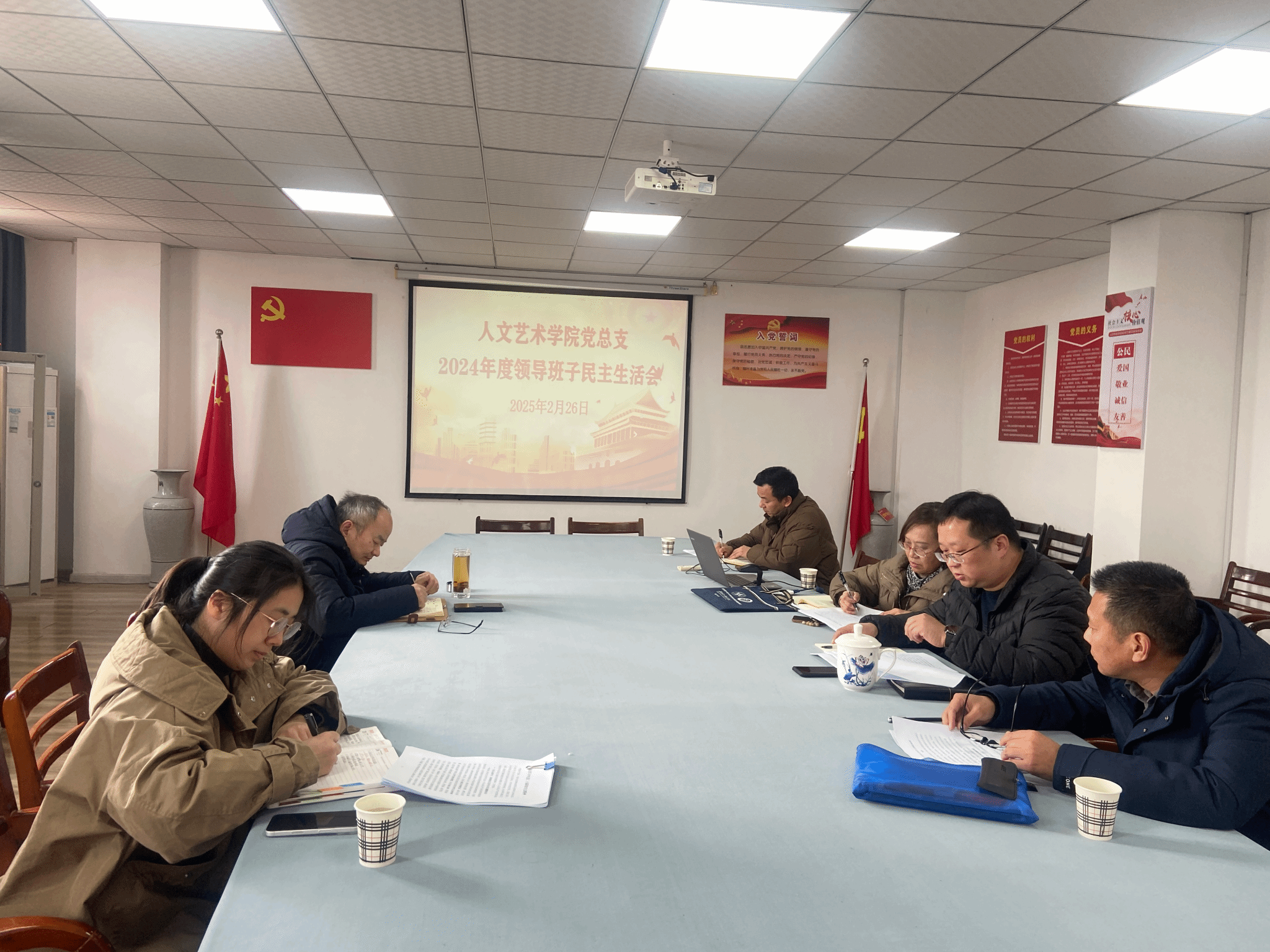 首先,韩飞代表党总支对民主生活会前期准备情况进行说明,并代表党总支班子作对照检查、剖析存在问题的原因、提出整改措施。随后,党总支班子成员依次发言,重点围绕“四个带头”查摆问题,剖析问题原因,提出整改措施。班子成员结合自身实际,坚持把职责摆进去、把自己摆进去、把工作摆进去,逐一进行对照检查。实事求是、坦诚相待,开展了批评和自我批评。