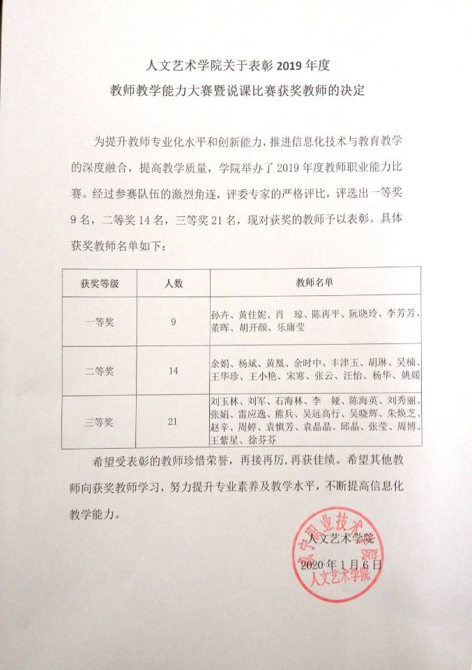 kaiyun开云官方关于表彰2019年度教师教学能力大赛暨说课比赛获奖教师的决定