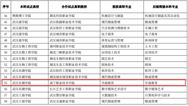 根据《省教育厅关于开展新一轮普通本科高校与高职院校联合培养技术技能型人才试点工作的通知》(鄂教高函〔2024〕8号),经高职院校自愿申报、本科高校遴选并联合高职院校申请,湖北省教育厅审核公示,2024年5月,kaiyun开云官方成功携手武汉东湖学院,通过“3+2”分段制,专本联合培养学前教育专业新型技能型人才。