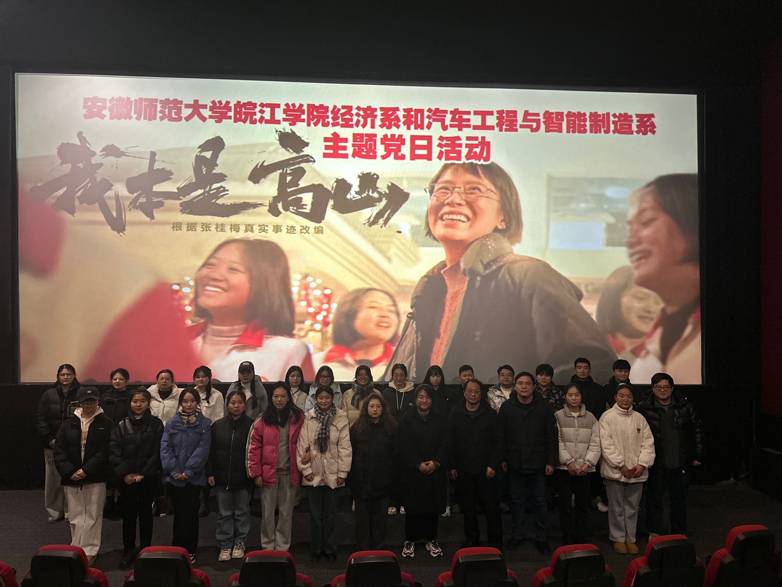 学习时代楷模,汲取榜样力量,丰富党员教育活动形式,2023年12月17日,经济系党总支组织开展《我本是高山》观影主题党日活动,共同见证张桂梅老师坚持扎根大山办教育的初心和担当,经济系党总支书记龚基云带领师生党员参与集体观影。