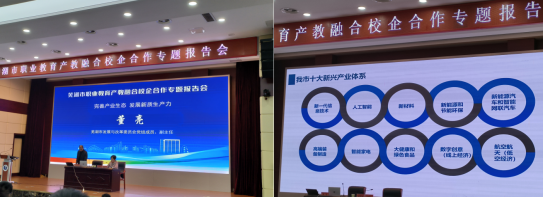 紧接着,芜湖市发展和改革委员会副主任董亮作了芜湖市产业发展情况报告。他详细介绍了芜湖市产业发展的现状和未来规划,并强调了职业教育在推动产业发展中的重要作用。董主任的报告为与会人员提供了更加清晰的产业背景和市场需求信息,有助于推动职业教育与产业的精准对接。