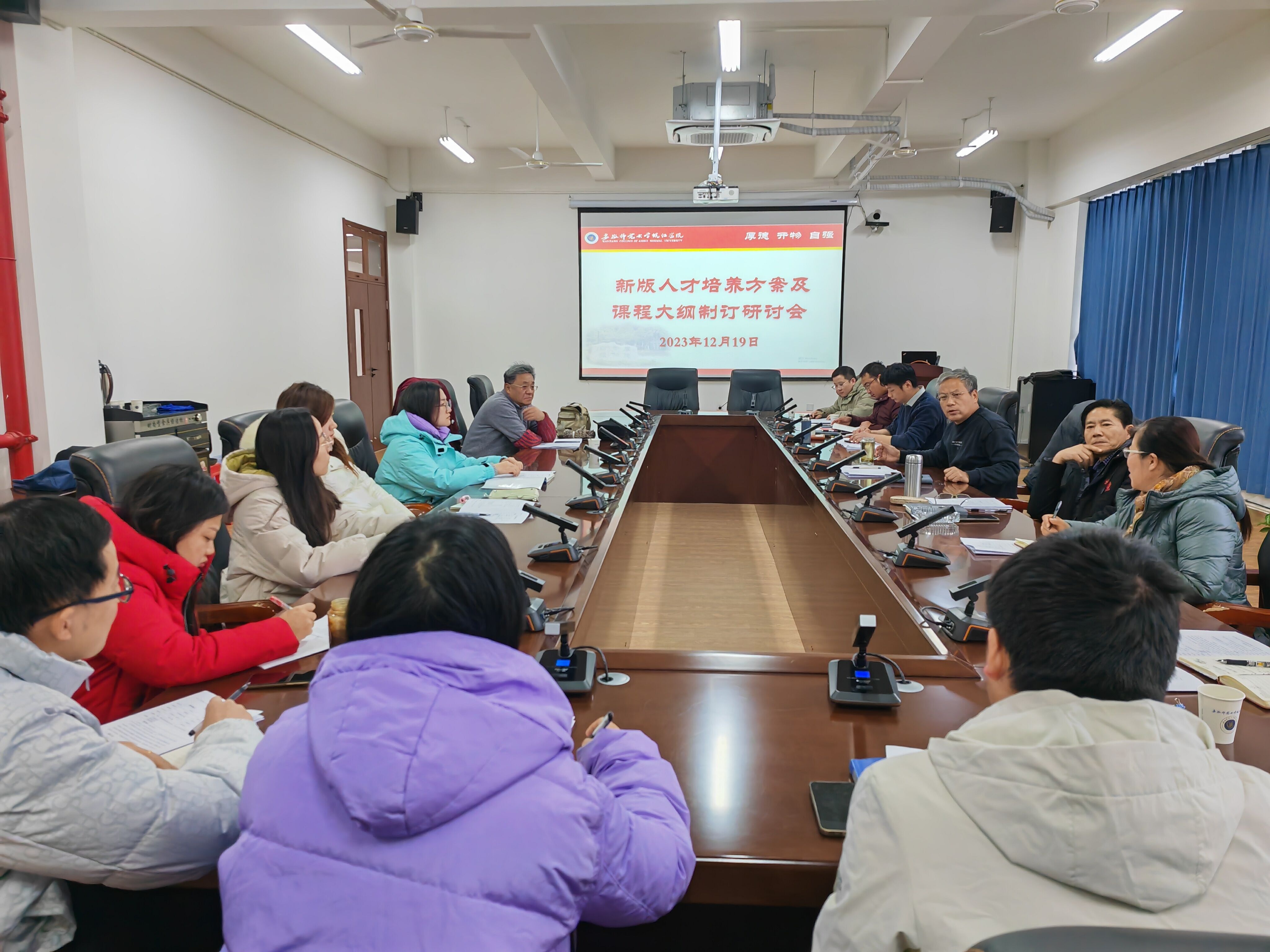 会议第二阶段,主要围绕课程大纲编制工作展开讨论。会上教务处副处长胡一鸣就新版课程大纲的格式和规范向各位老师作了简要说明。与会教师积极参与交流,就课程大纲编制过程中遇到共性问题进行了深入探讨。
