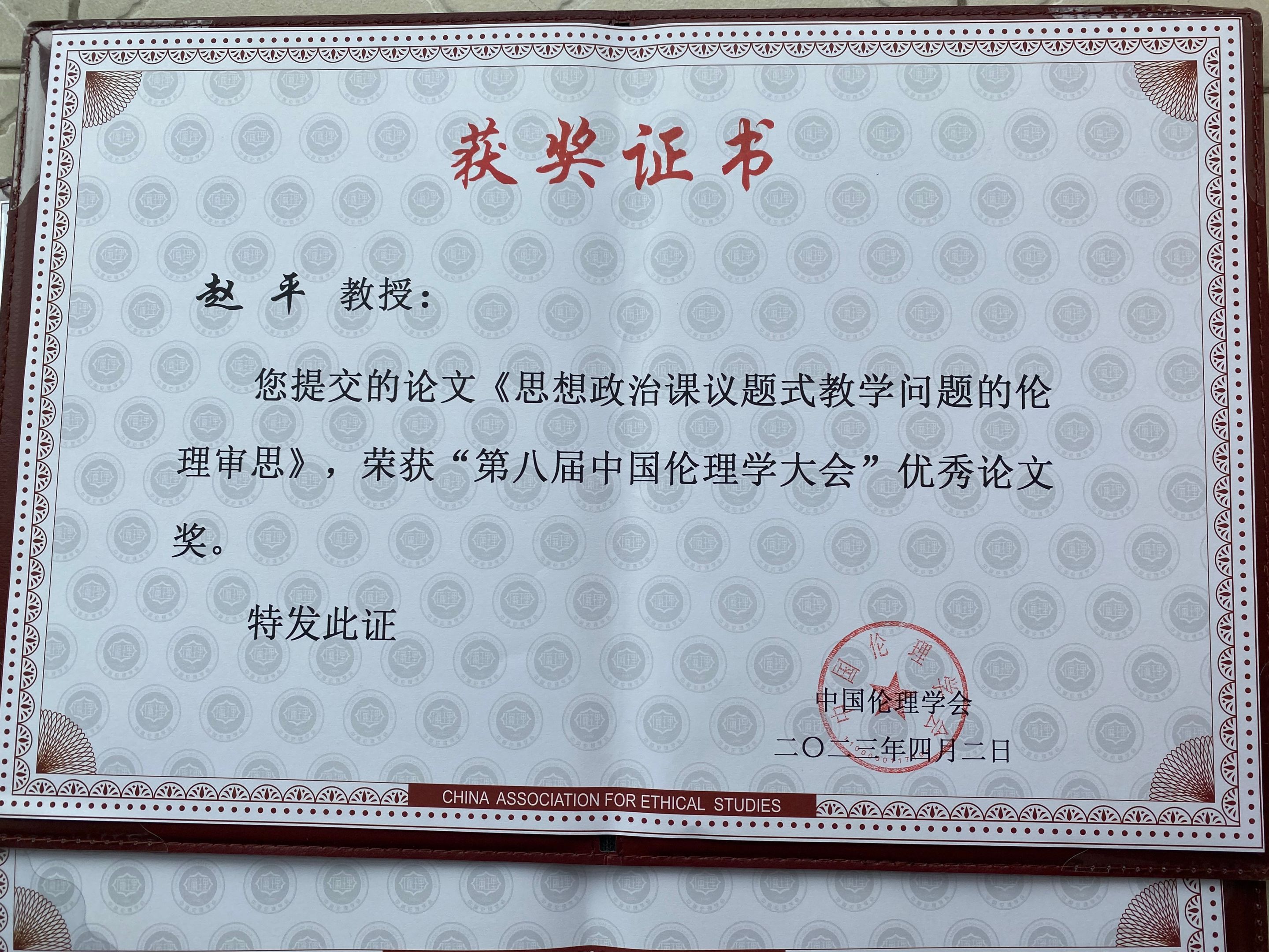 【喜讯】热烈祝贺赵平教授论文获得“第八届中国伦理学大会”优秀论文奖