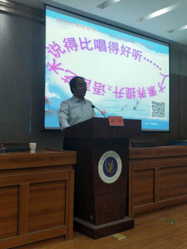 讲座伊始,赵平教授用诙谐幽默的话语让原本紧张的学术讲座现场变得轻松愉悦起来。接着,赵平教授说古论今、旁征博引地论证了语言艺术的价值和培育路径。他说:“会做不会说”“会做不会说”“不会说也不会做”“会说又会做”等不同的语言功夫决定不同的价值人生。他以严密的逻辑、敏捷的才思嗨翻全场,现场掌声不断。
