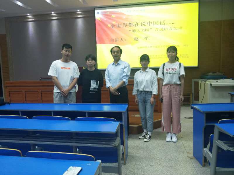 【本网讯】2019年5月24日晚七点半,“人文之光论坛” 之“人文点靓青春”系列讲座第十二讲“全世界都在说中国话……——现代人才的语言艺术”在安徽师范大学皖江学院图书馆报告厅成功举办。主讲嘉宾是安徽师范大学皖江学院思想政治理论教研部教授,博士生导师赵平博士。该活动由青年思想研究协会协办,由青年思想研究协会策划部干事毕冉主持,近两百位皖江学子到场聆听了本次讲座。
