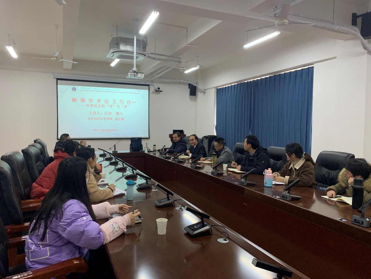为帮助青年教师提升论文写作能力,交流论文投稿经验,12月1日下午,我部在2号楼501会议室举办学术论文写作与投稿经验交流会。《安庆师范大学学报》副编审汪沛博士受邀作题为“聊聊学术论文写作——学术论文的‘学’与‘术’”的专题报告,全体思政课教师参会,交流分享会由思想政治理论教研部主任赵平教授主持。