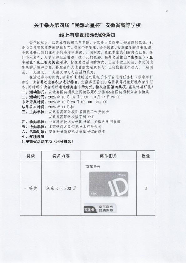 关于举办第四届“畅想之星杯”安徽省高等学校线上有奖阅读活动的通知