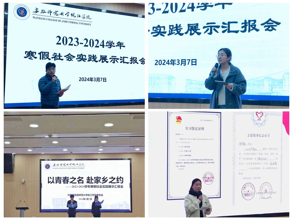 为进一步深化“行走的思政课堂”实践育人项目内涵提升,引领青年学子返回家乡参与实践服务家乡建设发展,学院在2024年寒假开展“以青春之名 赴家乡之约——寒假大学生‘返家乡’社会实践活动”,全院在校生积极参与。院团委从各系推荐的百余份寒假社会实践事迹中推选出十二位学生代表,他们以PPT汇报的方式向现场师生讲述了自己在寒假社会实践中的收获与成长。刘畅同学发挥所学专长,教授福利院孩子们舞蹈,为孩子们带去欢乐与温暖;周子宏同学参加政务实习,拜访慰问老兵,协助开展安全检查;孙关政同学参加志愿服务,为外卖员、消防员提供帮助;王子怡同学投身于社会公益,看望独居老人、清扫村庄道路;徐可歆同学参加“返家乡”实践活动,参观产业基地,提供车站志愿引导服务;刘法光同学协助村委会整理资料,辅导留守儿童完成寒假作业;李杜同学利用所学知识,担任助教老师,开展交通安全宣讲;王家和同学参与城市文明创建活动,进社区开展反诈宣传等。经过评审,孙关政、赵祯获得一等奖,周子宏等四位同学获得二等奖,徐可歆等六位同学获得三等奖。