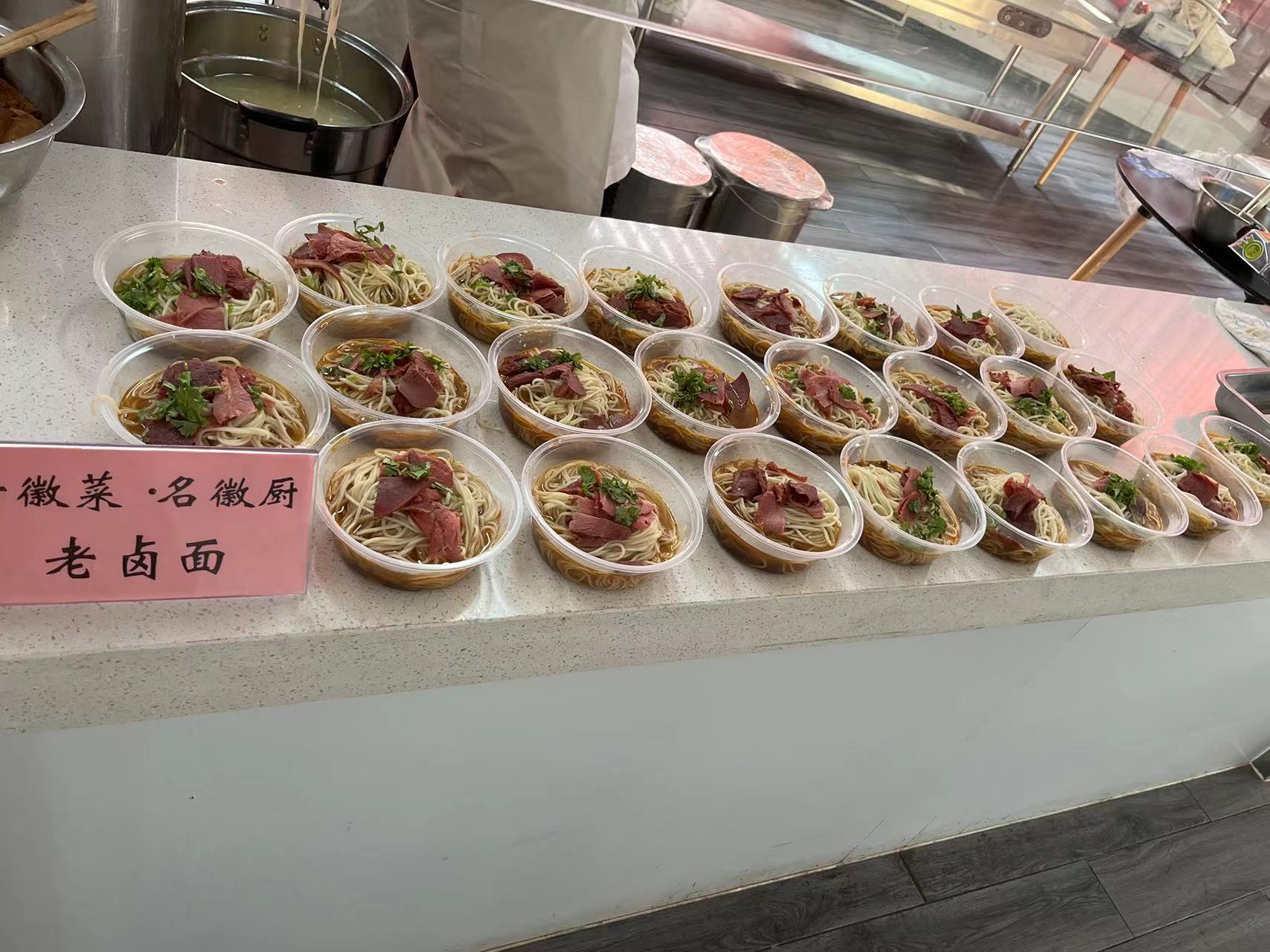 活动开始前,来自弋江区星厨职业培训学校的师傅们早早来到活动现场,布置场地,整理烹饪用具,准备食材。一切准备就绪后,师傅们现场制作了牛肉面、卤干子等芜湖小吃。此次活动,弋江区主办单位为我院师生准备了500份美食福利,可现场免费领取品尝。参与活动的师生们表示牛肉面味道很好,纷纷给徽厨点赞。