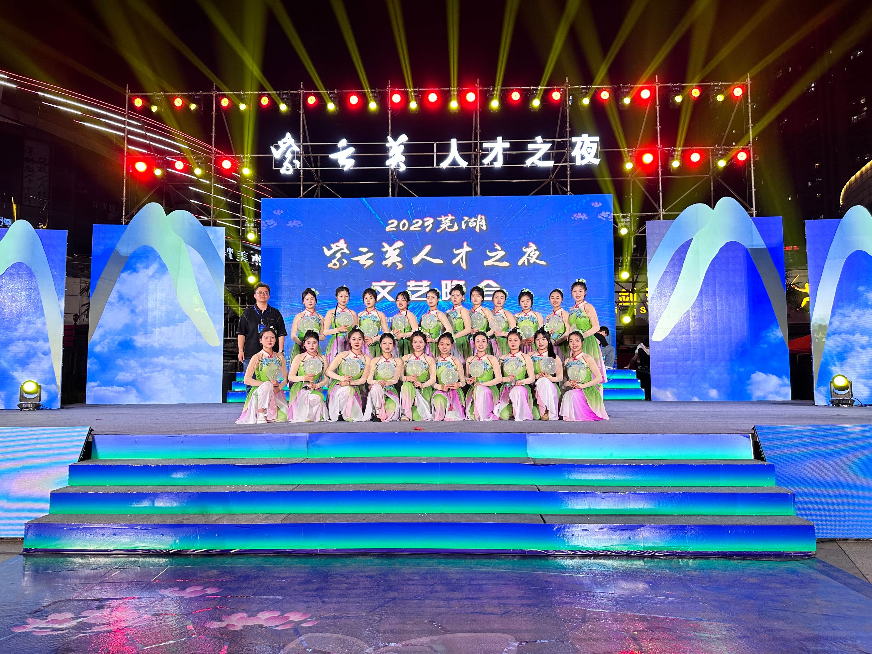 5月20日晚,由中共芜湖市委、芜湖市人民政府主办的“紫云英花开,芜湖等你来”2023芜湖紫云英人才之夜文艺晚会在芜湖滨江公园下沉广场拉开帷幕,芜湖市本科高校艺术团等专业团体,为在场的近700名各类人才代表带来精彩演出,我院20余位师生受邀参演。