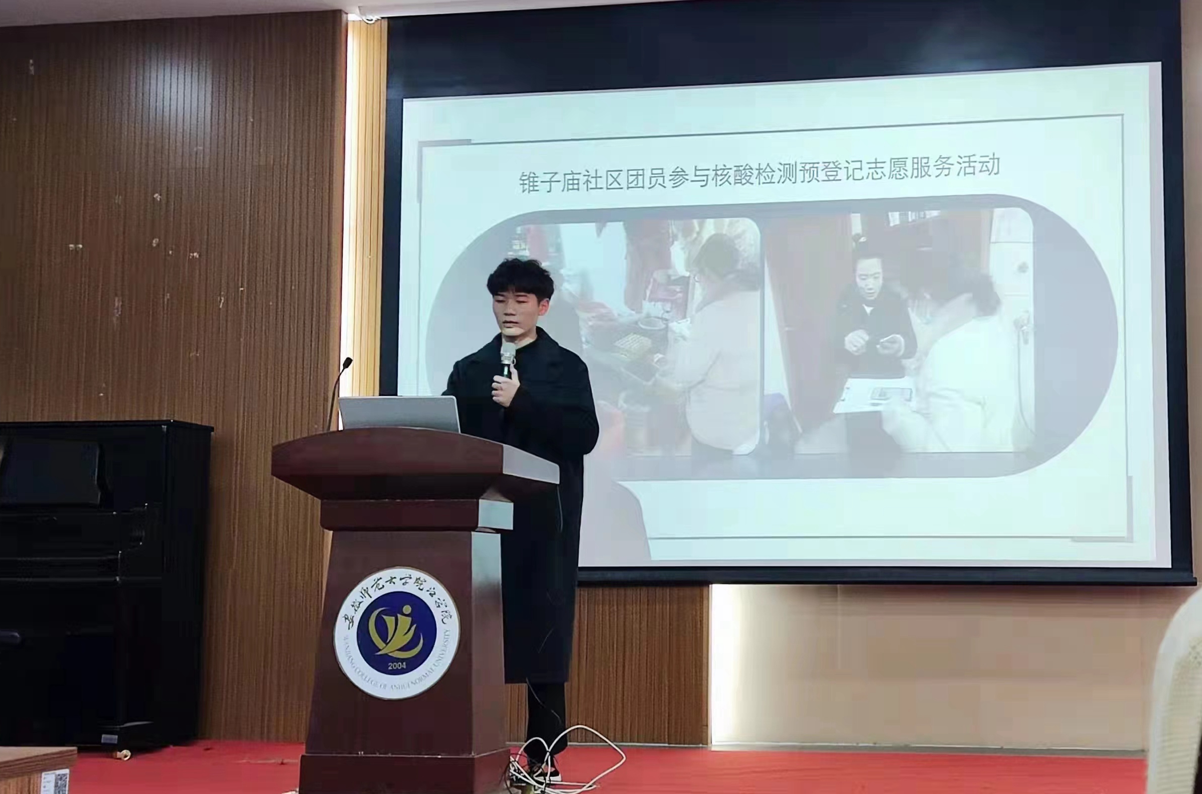 本网讯 3月4日,学院2021-2022学年“逐梦暖冬,乐享寒假”社会实践汇报评比会在东二五楼报告厅举行。院团委从各系推荐的100份社会实践成果中推选出十位汇报人,他们向现场师生讲述了自己在寒假社会实践中的收获与成长。