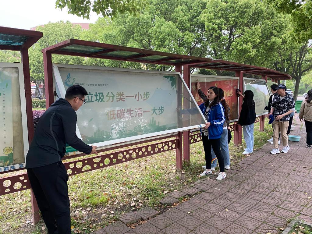 本网讯 4月25日下午,学院团委组织2021年“青马工程”培训班学员与学生会成员一起,对文津校区内所有的宣传橱窗进行了一次大清洗。