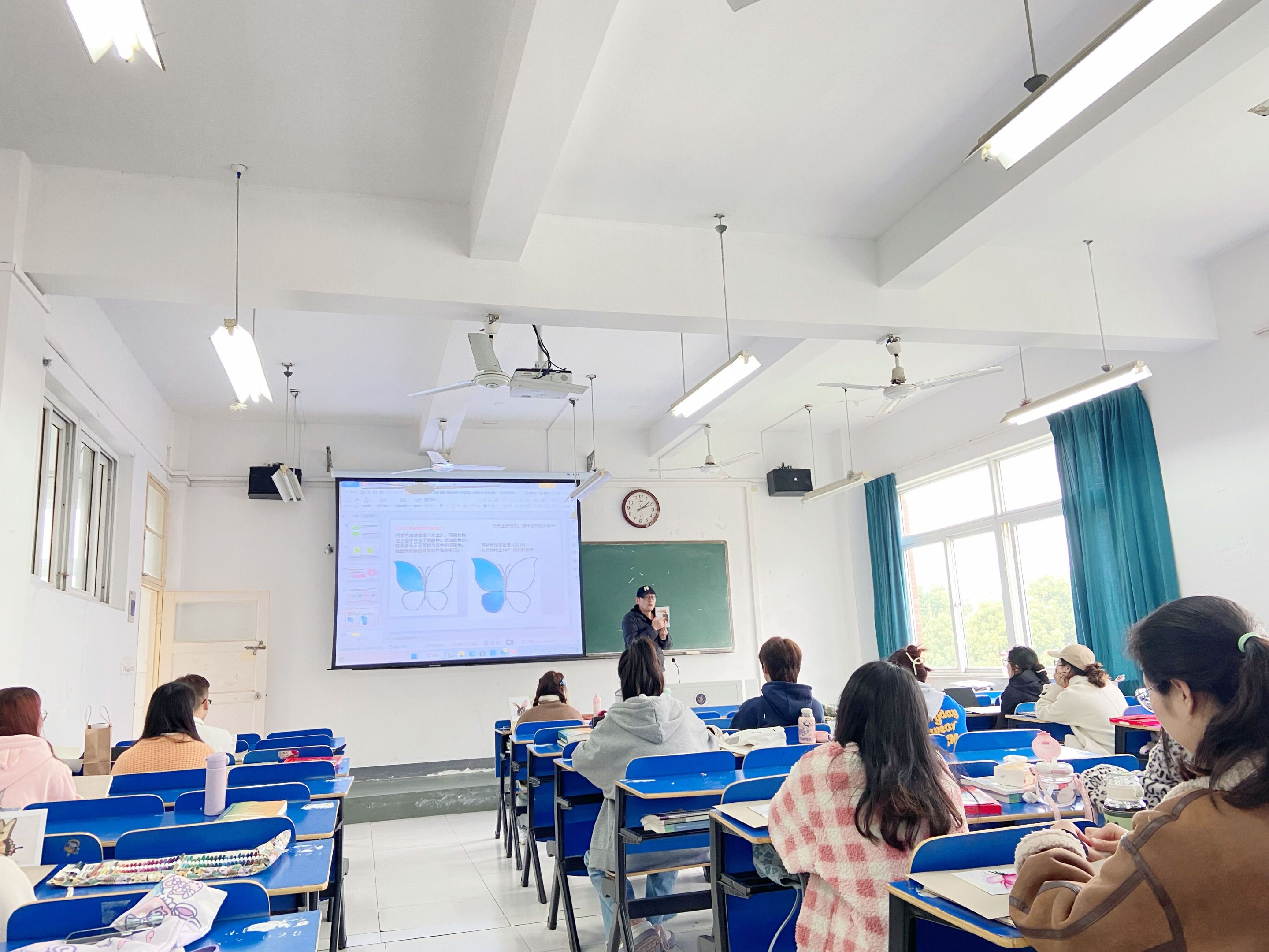 2023年3月23日下午,由学前教育系青年教师金毅主讲的课堂教学公开课《美术基础》在文津校区西二302教室开讲。本次公开课授课内容为“色彩运用技巧”,授课对象为2022级学前教育专业(专升本)学生,全系无教学任务的青年教师参与观摩学习。