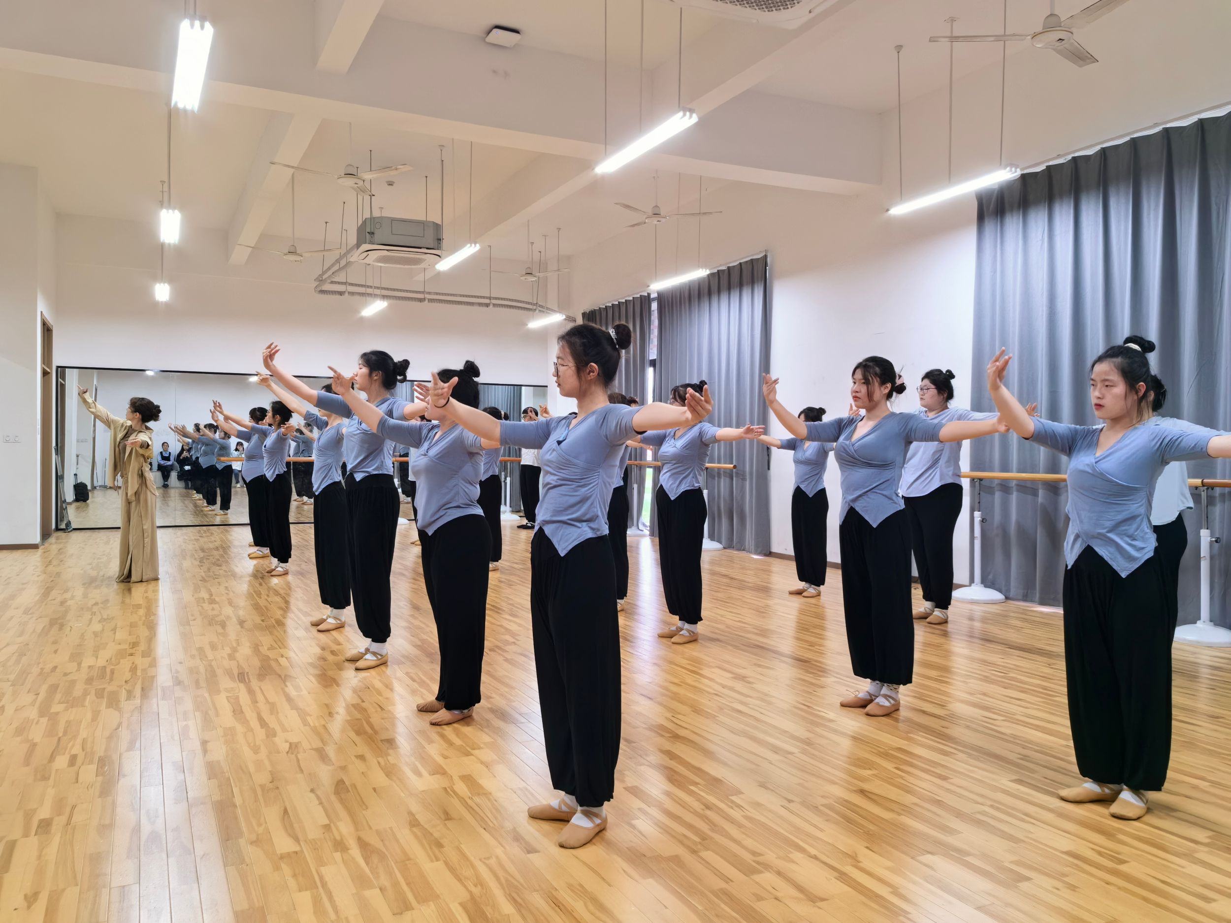 2024年4月2日下午14时,学前教育系在江北校区11号楼107教室举办《舞蹈基础》课程教学公开课。本次公开课由青年教师翟清华主讲、学前教育系主任张更立组织,授课对象为2023级学前教育专业学生,全系教师参与观摩学习。