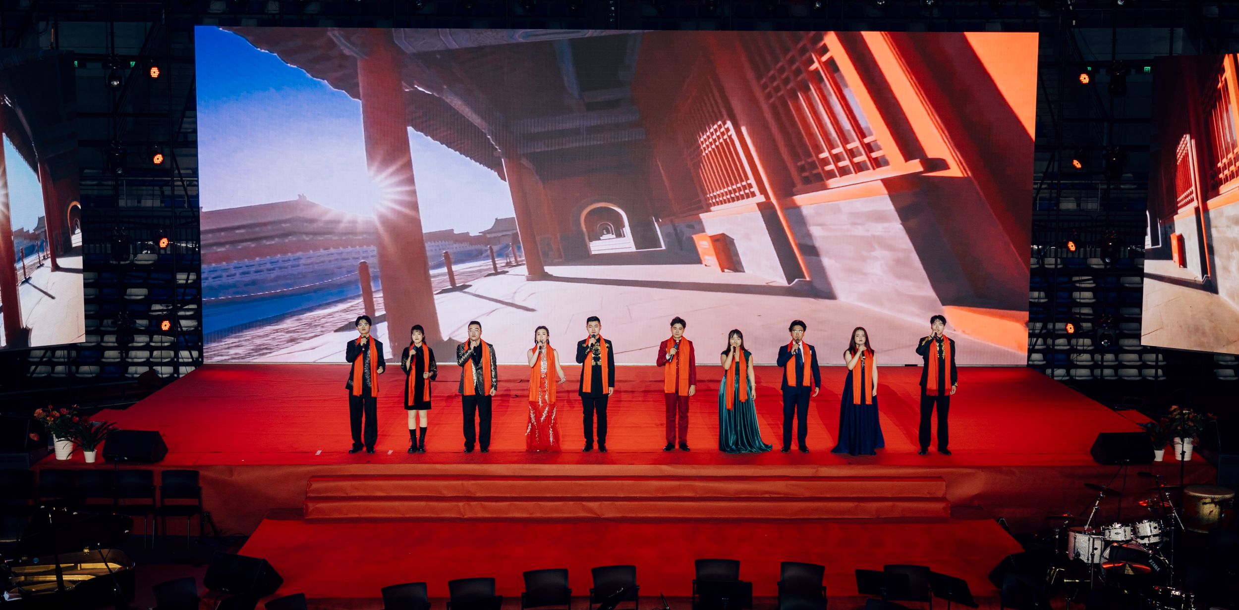 绚烂的青春在舞台绽放,自强的种子在江北播撒。第三篇章自此而始。莲灯盏盏亮起,舞者踏节而来。舞蹈《远古的呼唤》舞出丝绸之路上遥远的呐喊,在新年之时送上最美的祝福。除此之外,辅导员们与街舞社合作带来节目《一起向未来》也传递着手牵手、心连心,师生携手同行,共迎未来挑战的美好寓意。管理系、大数据与人工智能系与戏曲社携手打造的戏曲小品《福禄寿喜贺新年》掀起了晚会又一高潮,声情并茂的唱腔,幽默写实的内容引发全场欢笑,台上台下气氛融洽,反响不断。忆往昔,岁月峥嵘;看今朝,海晏河清。生在幸福时代当不忘来时之路,大学生艺术团合唱团以一首《追寻》唱出滚烫炽热的赤子之心,唱出追寻千年不变的信仰。不忘初心,牢记使命。晚会尾声在全场齐唱《歌唱祖国》中落下帷幕。歌声荡气回肠,响亮会场,激励着皖江人砥砺深耕,笃行致远,为建设美好皖江和实现中华民族伟大复兴的中国梦而奋进。