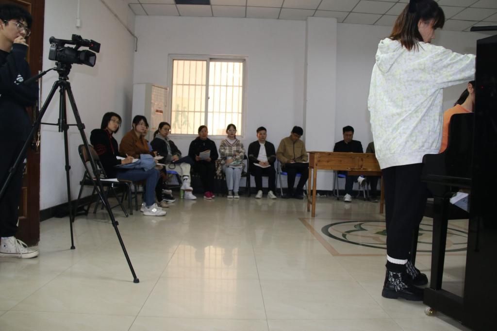 本网讯11月9日下午,在这个秋高气爽的天气里,bat365官网音乐系的老师及一些钢琴专业的学生共同观摩探讨有效教学的钢琴教研活动。bat365官网左苗老师和她的学生张杨在小黄楼管乐排练厅里做了精彩的展示。