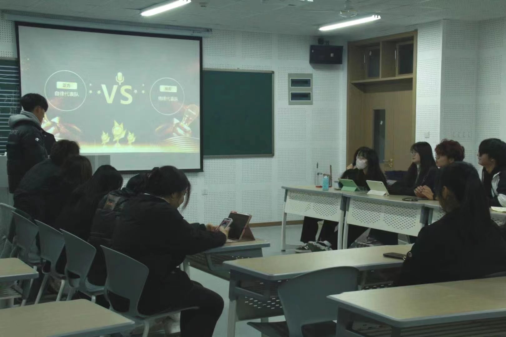 此次辩论赛的正方由系学生会文艺部、办公室和学习部成员组成,反方由宣传部、体育部成员组成。正方认为学风建设关键在于学生(自律),反方认为学风建设在学校(他律)。本次辩论由自由辩论展开,双方辩手围绕这学风建设各自的观点进行自由辩论,表达自身对“学风建设”的认识和见解,充分尊重对手,尊重比赛,展现出充沛的知识储备及流利的口才。最后,经慎重抉择,反方代表队胜。