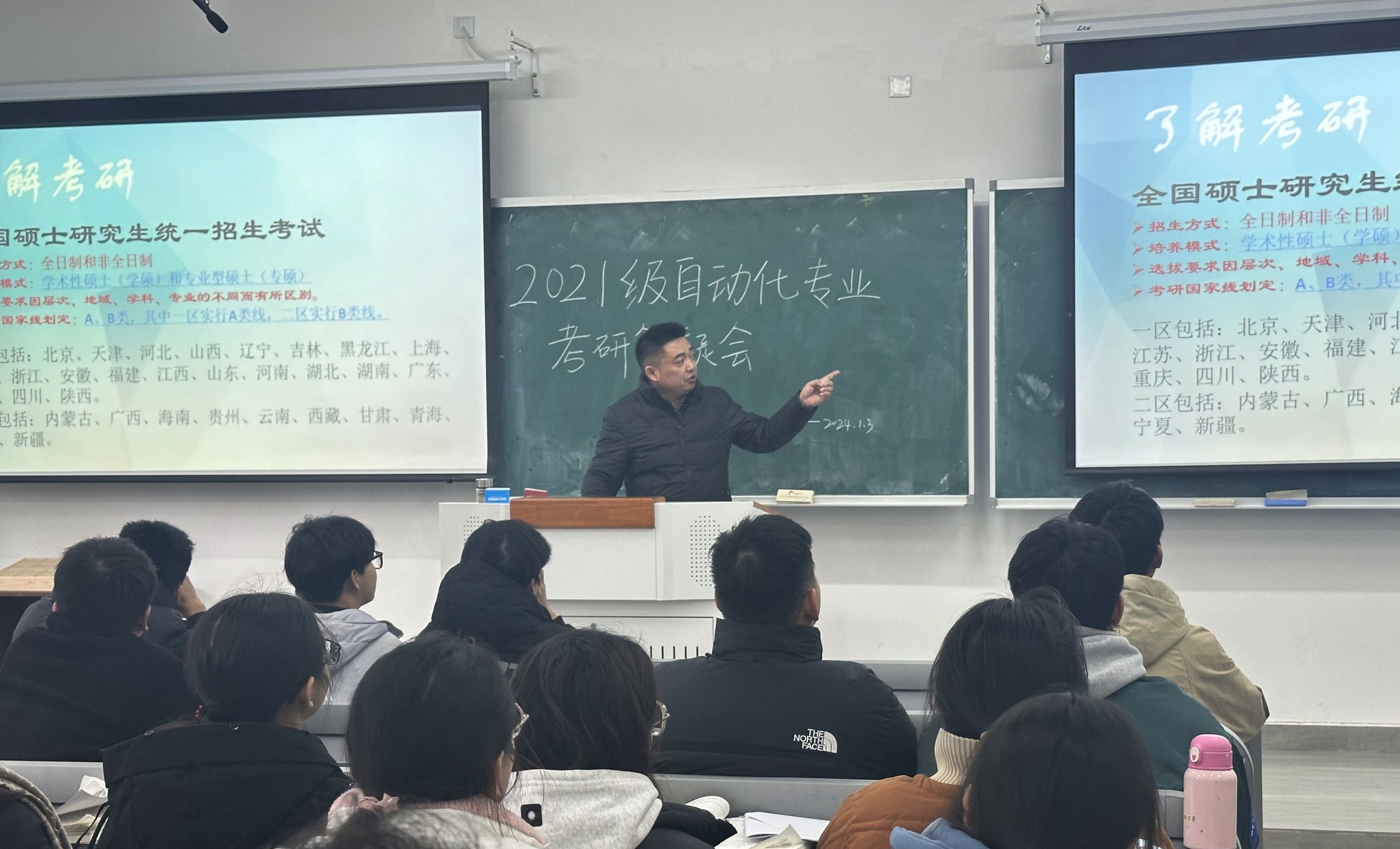 本网讯 为调动学生考研热情,营造浓厚考研氛围,解答学生备考困惑,提升同学对于考研整个流程的认知。1月3日,汽车工程与智能制造系在五号楼A102教室举办了2025届考研咨询答疑会。本次会议由副主任吴明明主持,2021级自动化专业有考研意愿的同学参加了本次会议。