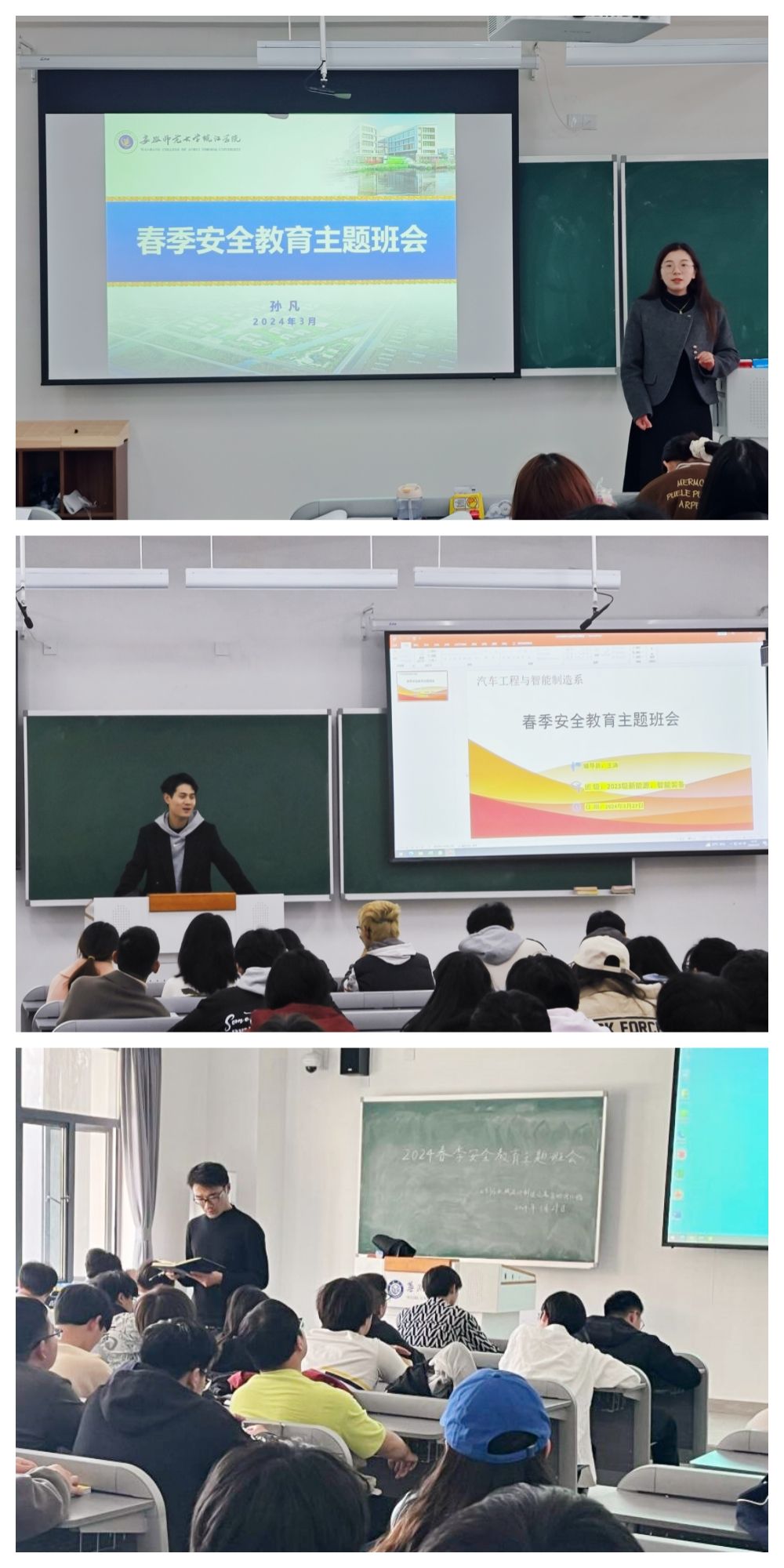 春季是各类安全隐患的高发期,也是学生安全教育工作的重要节点。汽车工程与智能制造系高度重视校园安全工作,召开安全教育工作会议。各年级辅导员针对春季安全教育问题,精心策划召开主题班会,向同学们讲述宿舍安全、用电安全、交通安全、财产安全、心理安全、网络安全等实际案例,将安全观念入耳、入脑、入心,在日常学习和生活中防患于未然。